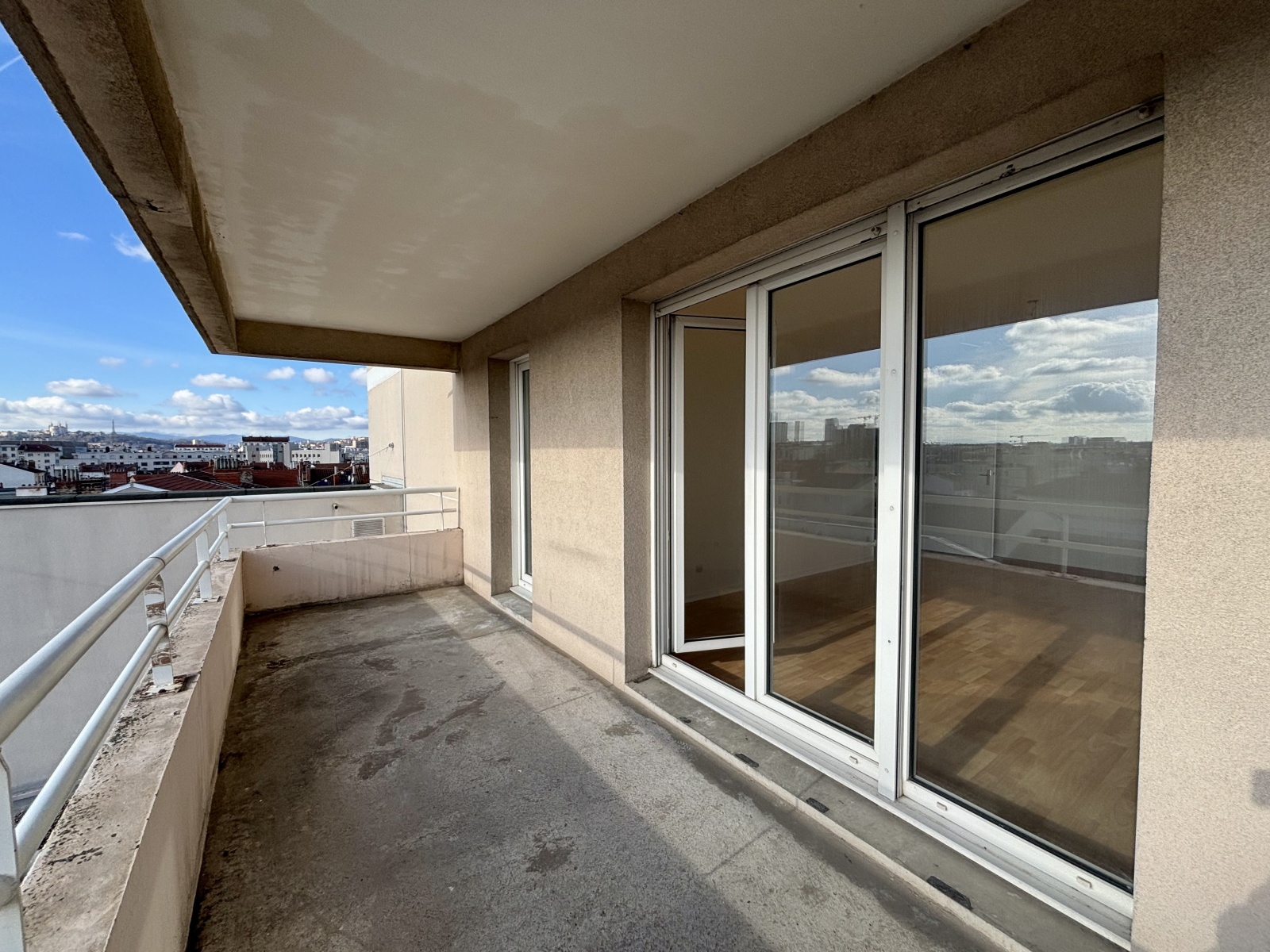 LOCATION 3 PIECES 69.05M² 69100 VILLEURBANNE - enitèrement repeint à neuf - Appartement T3 au 8ème étage composé d'une entrée, une pièce de vie ouvrant sur une terrasse, une cuisine séparée, 2 chambres, une salle de bains, WC séparé. Une cave et une place de parking complètent le bien. Loyer 966€ Complément de loyer 50€ (cave, terrasse) Loyer place de parking 90€ Charges 44€ (eau froide, entretien de la copropriété, ascenseur, digicode) TEOM 11.08€ Dépôt de garantie 1056€ Honoraires : 897.65€. Disponible de suite. Situé 11 rue des teinturiers.